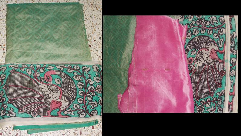I chose a beautiful Kalamkari border with peacock design, in light green color. Here is the Kalamkari border: