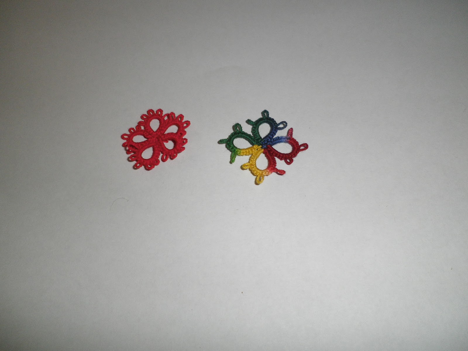 Some bigger motifs, made using multi color thread and joining two shuttles together.